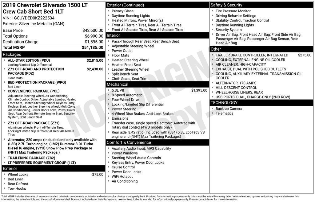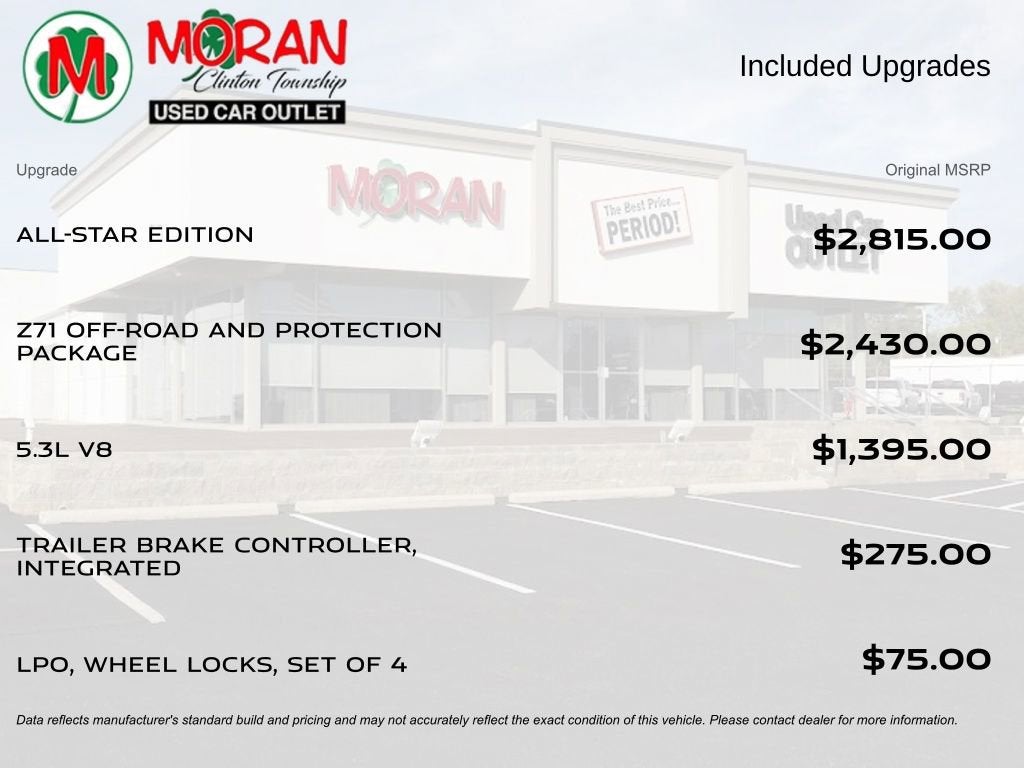 Moran Used Car Outlet is proudly family-owned and part of the trusted Moran Automotive Group. We believe in treating every customer like family—offering honest service, real value, and a no-pressure buying experience. We offer a wide selection of affordable used vehicles, including wholesale-to-the-public options with a broad mix of makes, models, years, and price points to fit nearly any budget or need!Silver Ice Metallic 2019 Chevrolet Silverado 1500 LT 4WD EcoTec3 5.3L V8 8-Speed Automatic8-Speed Automatic, 4WD, Black Cloth.Moran Used Car Outlet - (586) 422-1610 - 37777 South Gratiot Ave. Clinton Township, MI 48036.